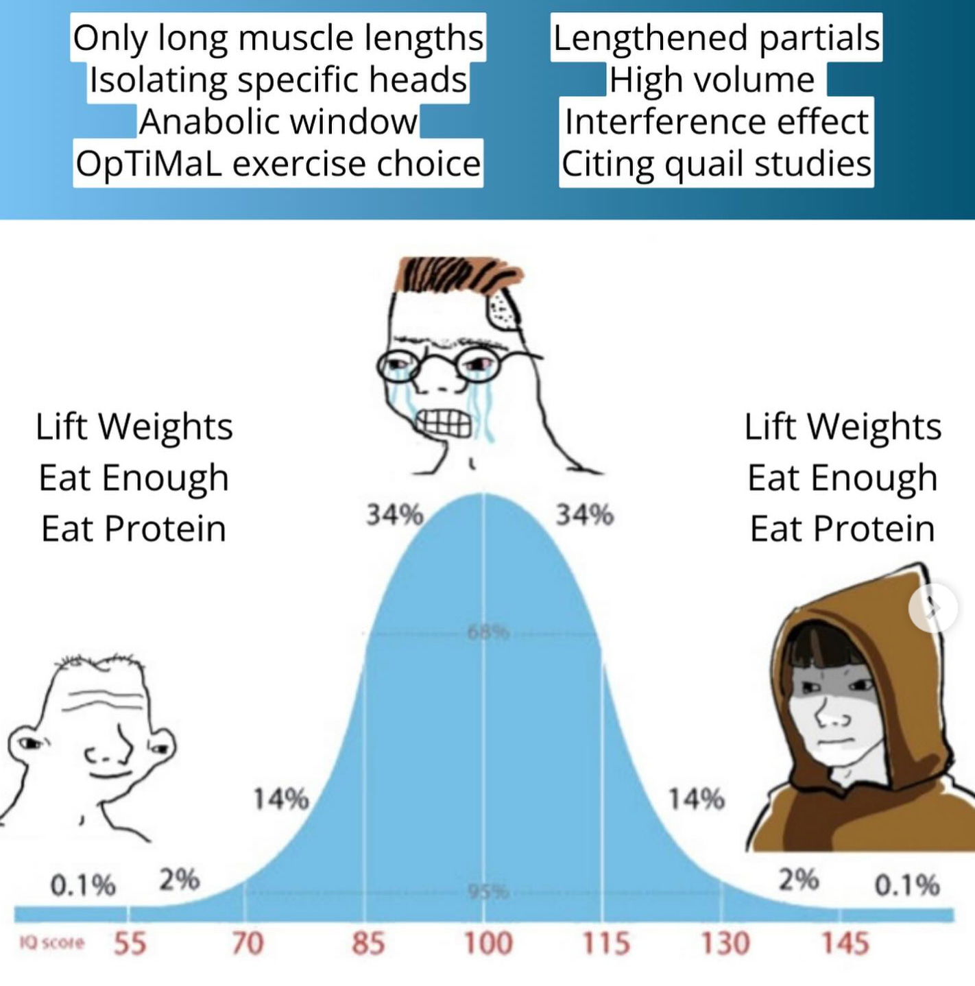 They would rather take a handful of pills (like the most famous modern midwitter Bryan Johnson famously known for taking 100 pills daily) to make up for their nutrient-deficient plant-based diet and get all the booster shots and peptides rather than just eat some steak, get some sun, and do some moderate exercise or weight training 3x a week.